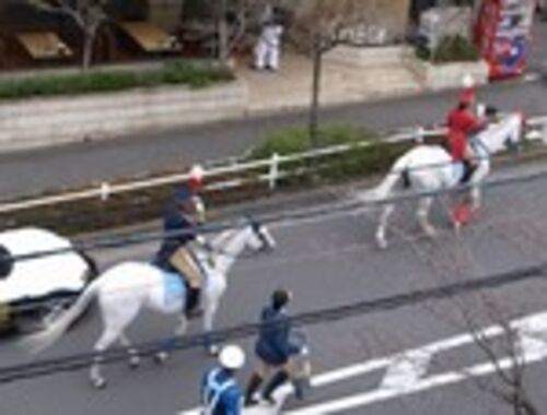昨日の午後3時半ころのことです。なんだか事務所の外が騒がしいのです。鼓笛隊のような音も聞こえます。 窓を開け階下を見ると、なんと前の道を馬が2頭歩いているではありませんか!どうやら後に続く新選組風の法被を着た子供たちを先導しているようです。…
